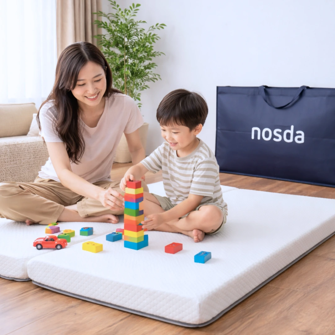 Nosda Ergonomic Trifold Mattress is a multifunctional solution for every home. Use it for sleeping, hosting guests, or as a cozy playmat for your little one. Its foldable design ensures easy storage and portability — perfect for guests, nap time, or playtime anytime